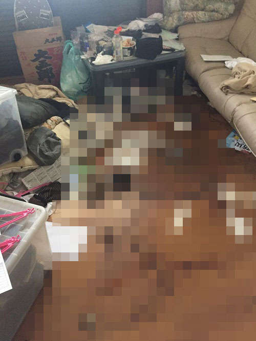 お見積りにお伺いした際は、部屋中ハエだらけの状態でしたが、作業に入らせて頂いた日には、ハエは全滅してる状況で、腐敗臭がかなり立ち込めていました。