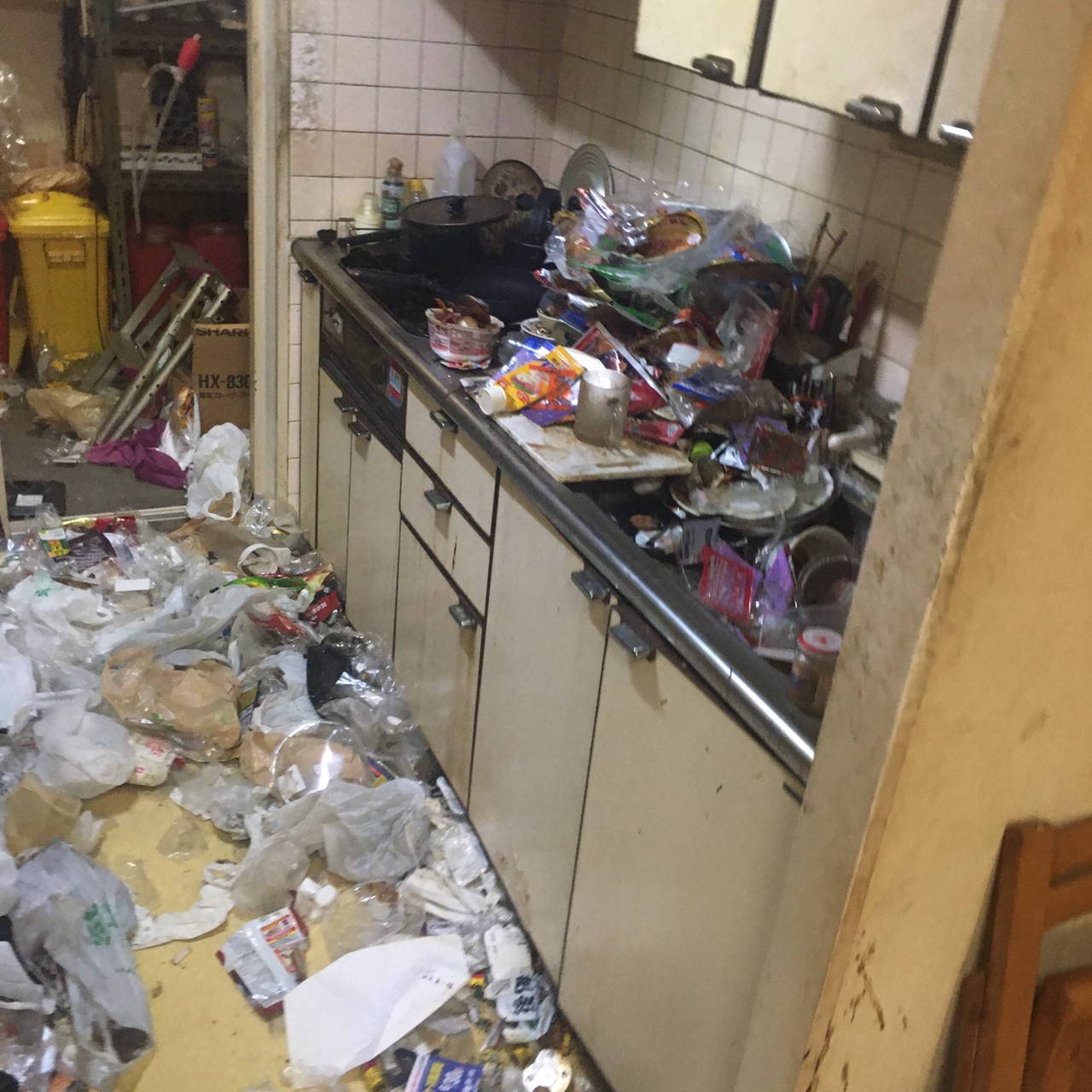 リビングや台所にはご入院前のままの状態でお弁当の食べたパックなどの回収品があたり一面に広がっておりました。